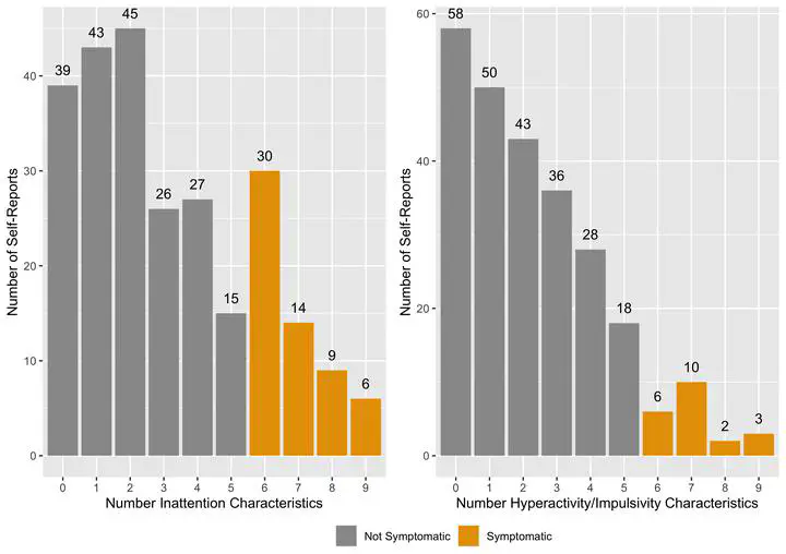 Recent studies have shown that many children who stutter may have elevated characteristics of attention- deficit/hyperactivity disorder (ADHD). Although childhood ADHD commonly persists into adulthood, it is unclear how many adults who stutter experience aspects of ADHD (eg, inattention or hyperactivity/impulsivity). This study sought to increase understanding of how ADHD characteristics might affect individuals who stutter by evaluating (a) whether elevated ADHD characteristics are common in adults who stutter, (b) whether elevated ADHD characteristics in adults who stutter were significantly associated with greater adverse impact related to stuttering, and (c) whether individual differences in Repetitive Negative Thinking (RNT) and Effortful Control influenced this relationship.